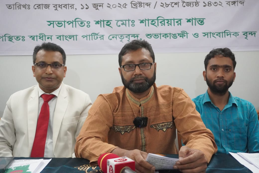 নিজস্ব প্রতিবেদকঃ“জনগণের শক্তি, স্বাধীন বাংলার ভিত্তি” — এই মূল স্লোগানকে সামনে রেখে স্বাধীন বাংলা পার্টি ১১ জুন ২০২৫, বুধবার সন্ধ্যায় রাজধানীর শাহবাগ সংস্কৃতি বিকাশ কেন্দ্রে আনুষ্ঠানিকভাবে আত্মপ্রকাশ করে। এ উপলক্ষে আয়োজিত এক সংবাদ সম্মেলনে দলের গঠন, নীতি ও লক্ষ্য-উদ্দেশ্য ঘোষণা করা হয়।