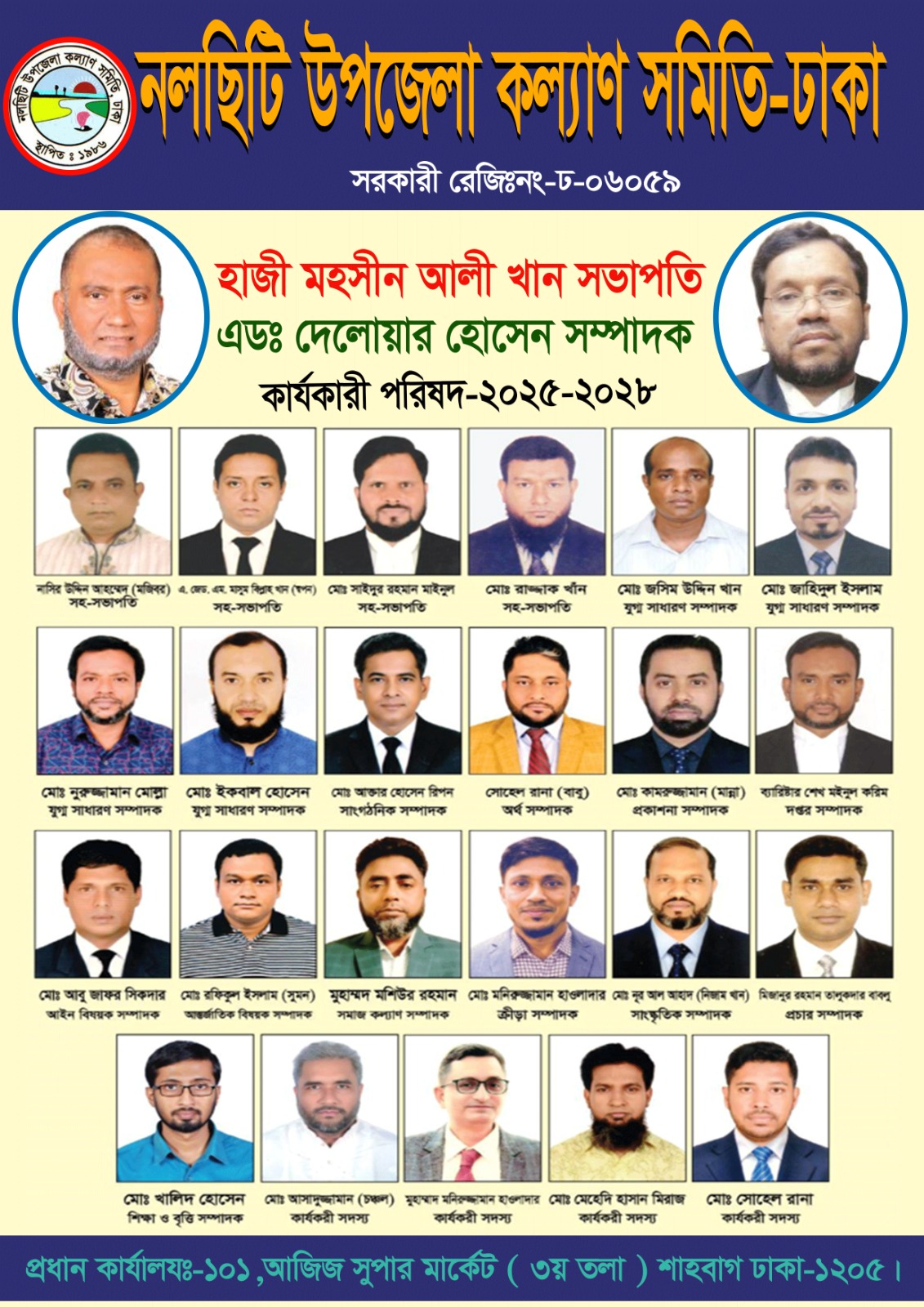 ঢাকাস্থ নলছিটি উপজেলা কল্যাণ সমিতির ২০২৫-২০২৮ মেয়াদের নতুন কমিটি গঠন করা হয়েছে। কমিটিতে হাজী মো. মহসীন আলী খান সভাপতি এবং অ্যাডভোকেট দেলোয়ার হোসেন ফেরদাউস সাধারণ সম্পাদক নির্বাচিত হয়েছেন।