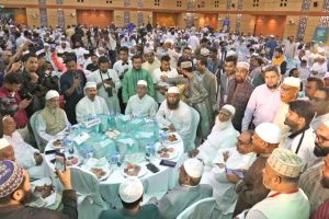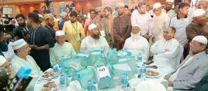 ইফতারির পূর্ব মুহূর্তে আমীরে জামায়াত মাহফিলে উপস্থিত সবাইকে নিয়ে দেশ ও জাতি এবং মুসলিম উম্মাহর শান্তি ও কল্যাণ কামনা করে আল্লাহর নিকট দোয়া করেন।